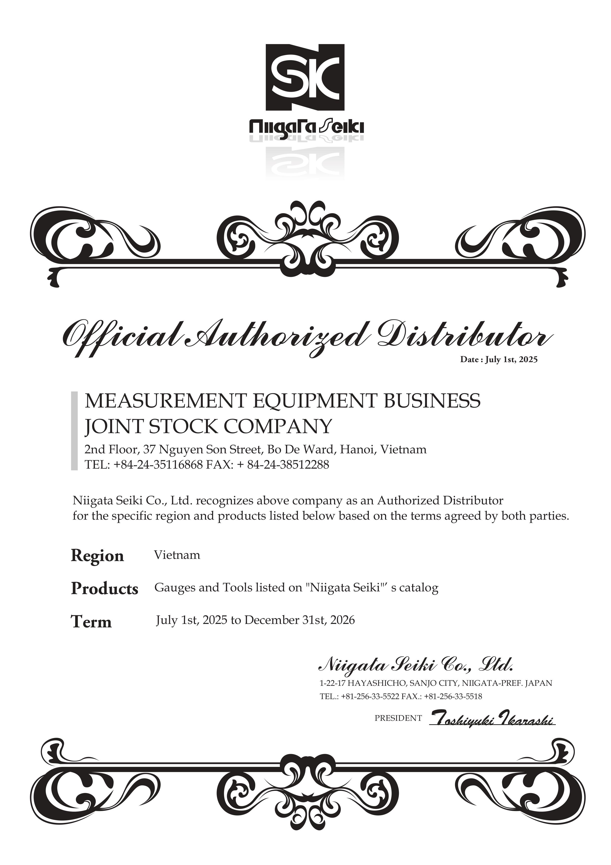 Công ty Cổ phần kinh doanh Thiết bị đo lường (MEB.,JSC) – Đại lý phân phối thiết bị đo lường Niigata Seiki tại Việt Nam.